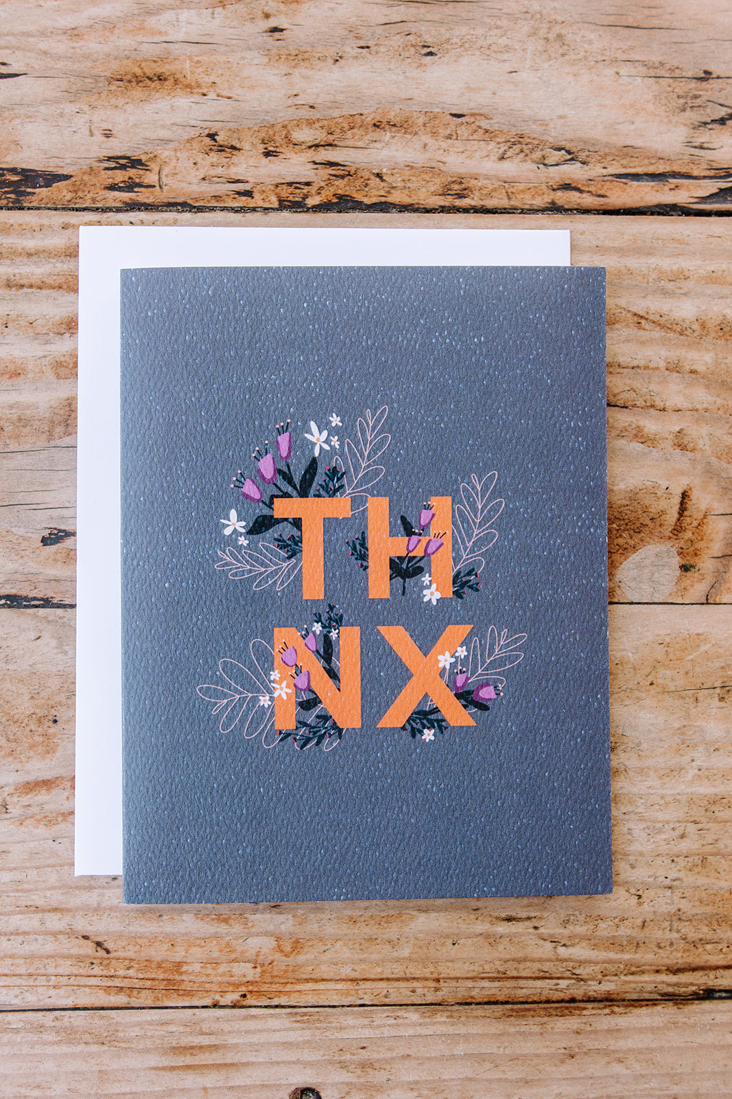 Say thank you with a bit of floral flair—this "THNX" card is the perfect combination of modern design and heartfelt gratitude.